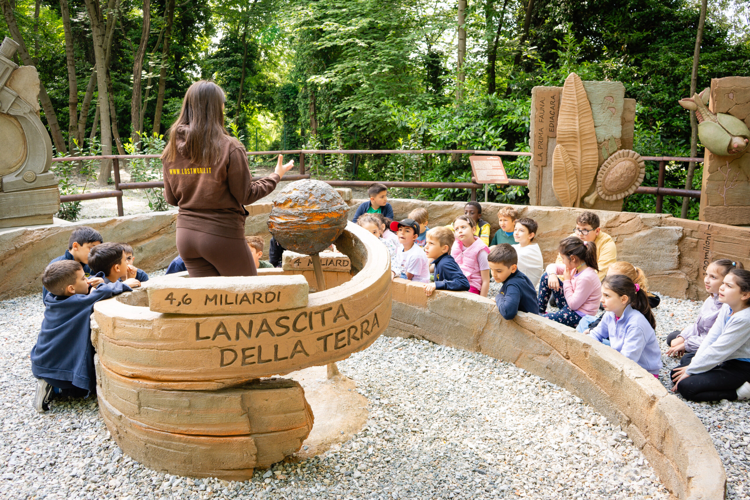 Il Parco Lost World offre ai visitatori un’esperienza completa per esplorare la storia del nostro pianeta. Elemento introduttivo al percorso è la scultura La Spirale del Tempo: un’opera di 23 metri che sintetizza 4,6 miliardi di anni, dalla nascita della Terra ai giorni nostri.